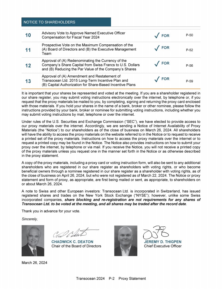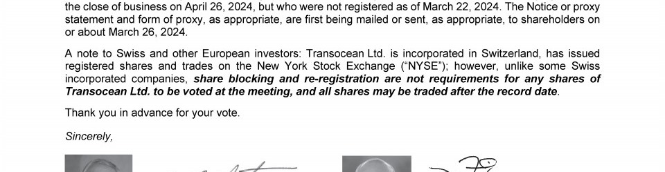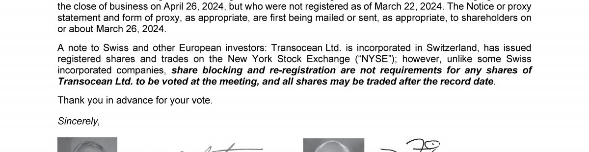 Invitation to 2024 Annual General Meeting of Transocean Ltd.