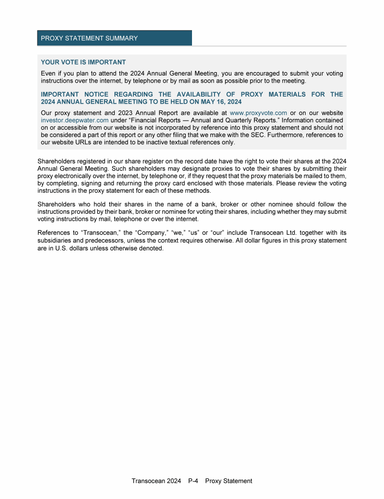 Invitation to 2024 Annual General Meeting of Transocean Ltd.