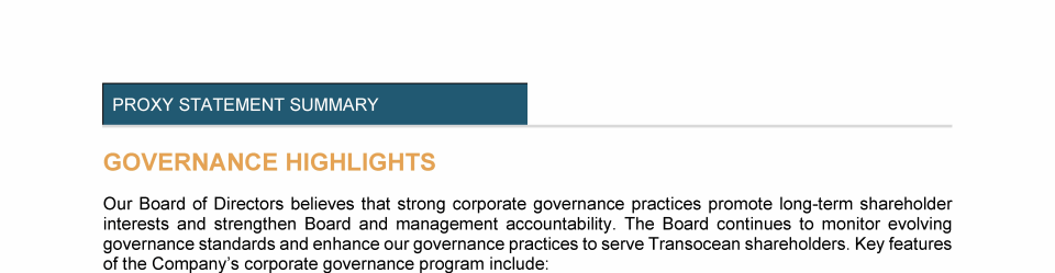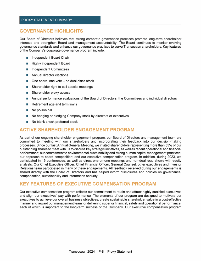 Agenda Item 1. Approval of (A) the 2023 Annual Report, Including the Audited Consolidated Financial Statements of Transocean Ltd. for Fiscal Year 2023 and the Audited Statutory Financial Statements of Transocean Ltd. for Fiscal Year 2023, (B) the Swiss Statutory Compensation Report for Fiscal Year 2023 and (C) the Swiss Statutory Report on Non-Financial Matters for Fiscal Year 2023
