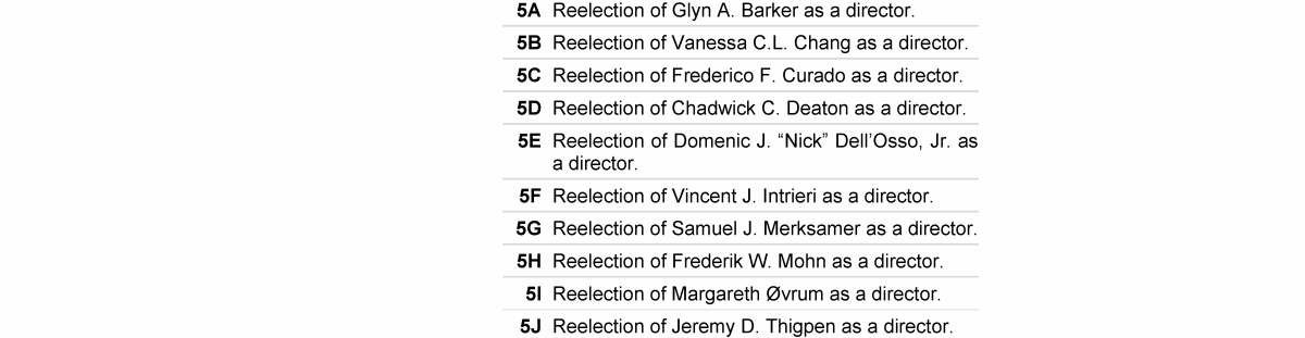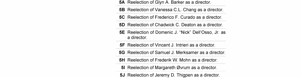 Agenda Item 5. Reelection of 10 Directors, Each for a Term Extending Until Completion of the Next Annual General Meeting