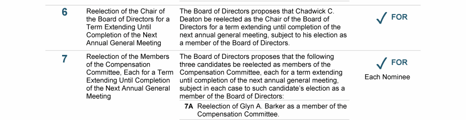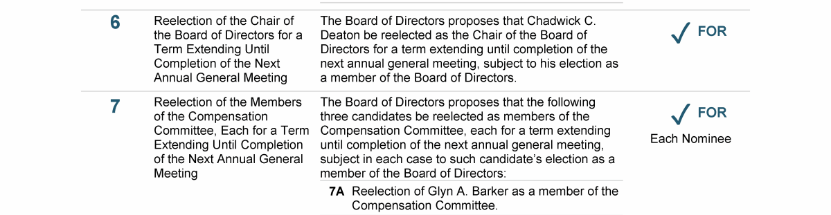 Agenda Item 6. Reelection of the Chair of the Board of Directors for a Term Extending Until Completion of the Next Annual General Meeting