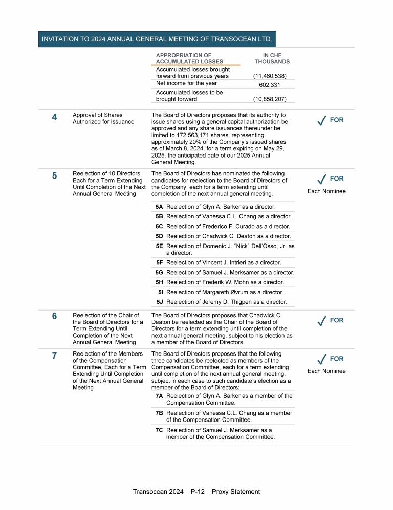 Invitation to 2024 Annual General Meeting of Transocean Ltd.