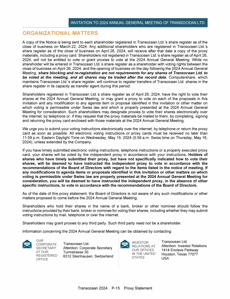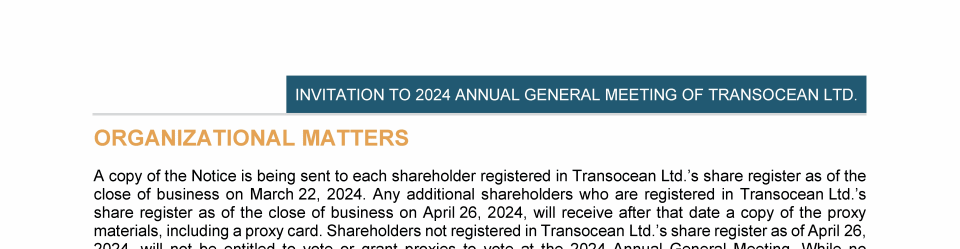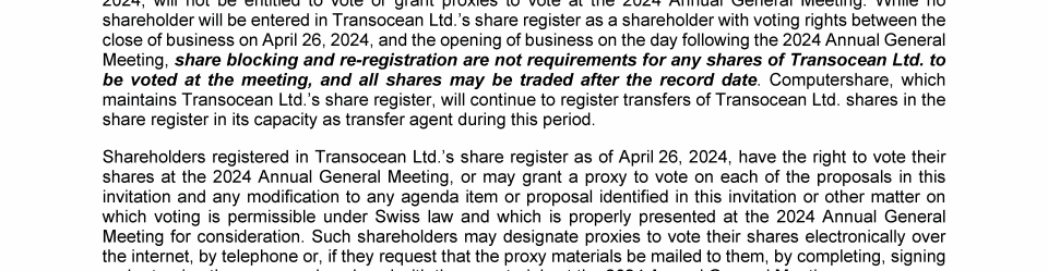 Invitation to 2024 Annual General Meeting of Transocean Ltd.
