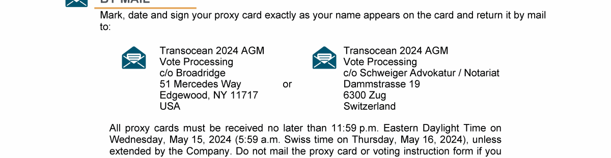Invitation to 2024 Annual General Meeting of Transocean Ltd.