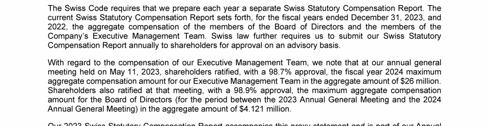 Agenda Item 9. Appointment of Ernst & Young LLP as the Company's Independent Registered Public Accounting Firm for Fiscal Year 2024 and Reelection of Ernst & Young Ltd, Zurich, as the Company's Auditor for a Further One-Year Term