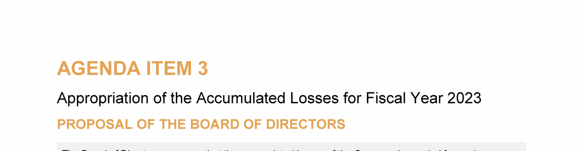 Agenda Item 3. Appropriation of the Accumulated Losses for Fiscal Year 2023
