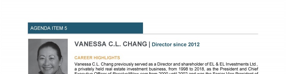 Agenda Item 5. Reelection of 10 Directors, Each for a Term Extending Until Completion of the Next Annual General Meeting
