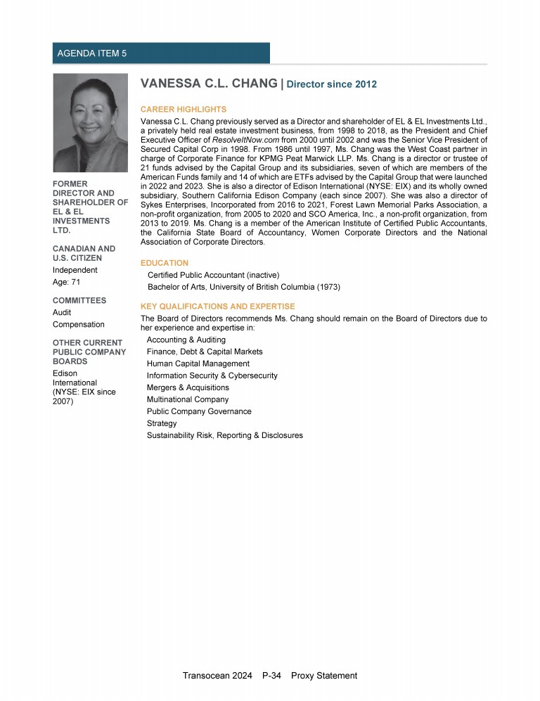 Agenda Item 1. Approval of (A) the 2023 Annual Report, Including the Audited Consolidated Financial Statements of Transocean Ltd. for Fiscal Year 2023 and the Audited Statutory Financial Statements of Transocean Ltd. for Fiscal Year 2023, (B) the Swiss Statutory Compensation Report for Fiscal Year 2023 and (C) the Swiss Statutory Report on Non-Financial Matters for Fiscal Year 2023