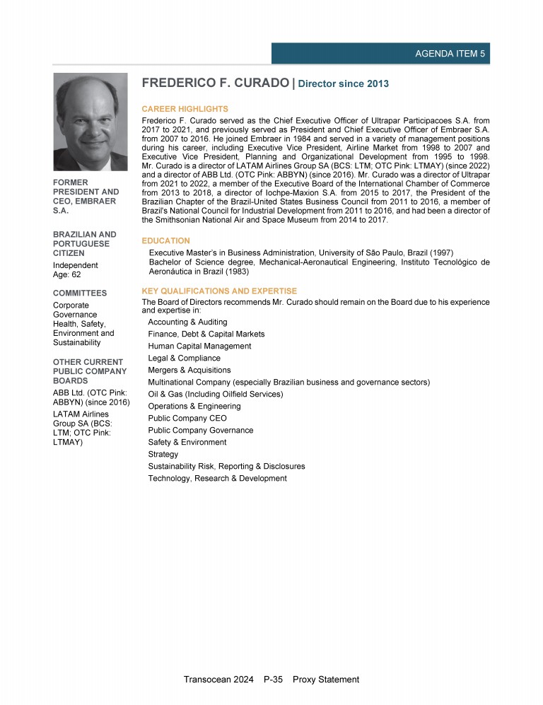 Agenda Item 1. Approval of (A) the 2023 Annual Report, Including the Audited Consolidated Financial Statements of Transocean Ltd. for Fiscal Year 2023 and the Audited Statutory Financial Statements of Transocean Ltd. for Fiscal Year 2023, (B) the Swiss Statutory Compensation Report for Fiscal Year 2023 and (C) the Swiss Statutory Report on Non-Financial Matters for Fiscal Year 2023