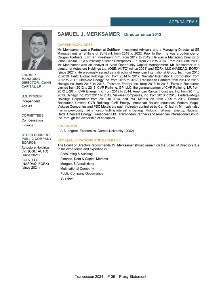 Invitation to 2024 Annual General Meeting of Transocean Ltd.