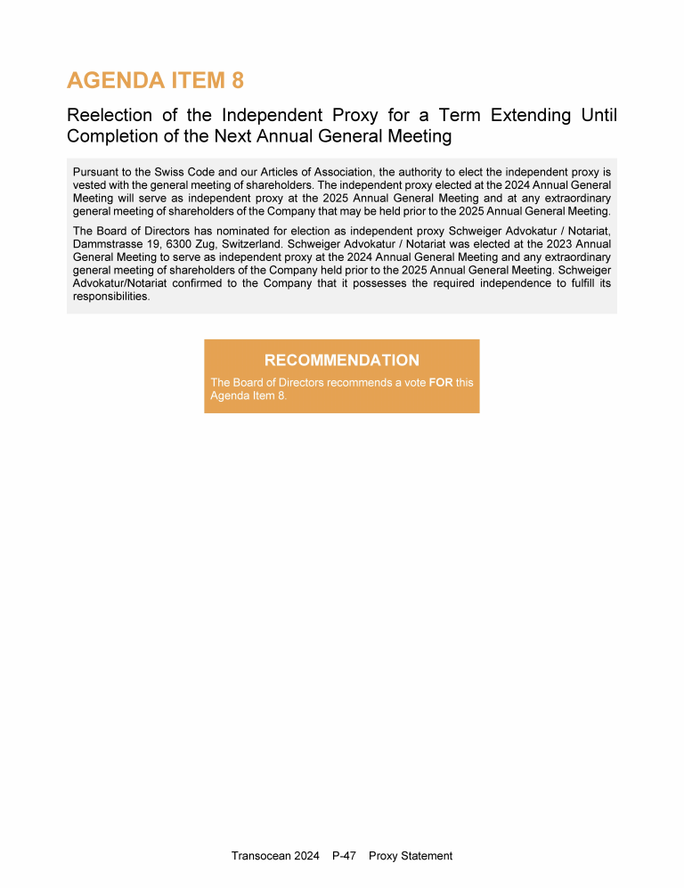 Agenda Item 8. Reelection of the Independent Proxy for a Term Extending Until Completion of the Next Annual General Meeting