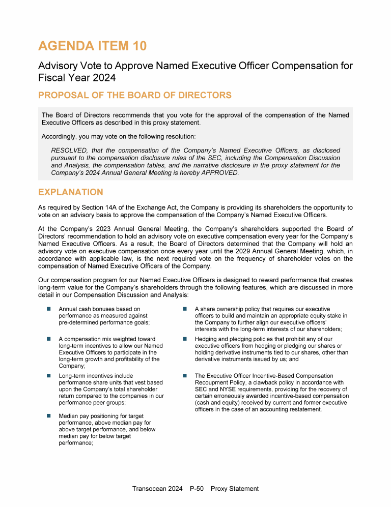 Agenda Item 10. Advisory Vote to Approve Named Executive Officer Compensation for Fiscal Year 2024