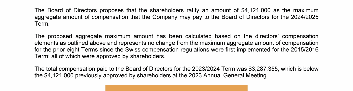 Agenda Item 12. Approval of (A) Redenominating the Currency of the Company's Share Capital from Swiss Francs to U.S. Dollars and (B) Reducing the Par Value of the Company's Shares