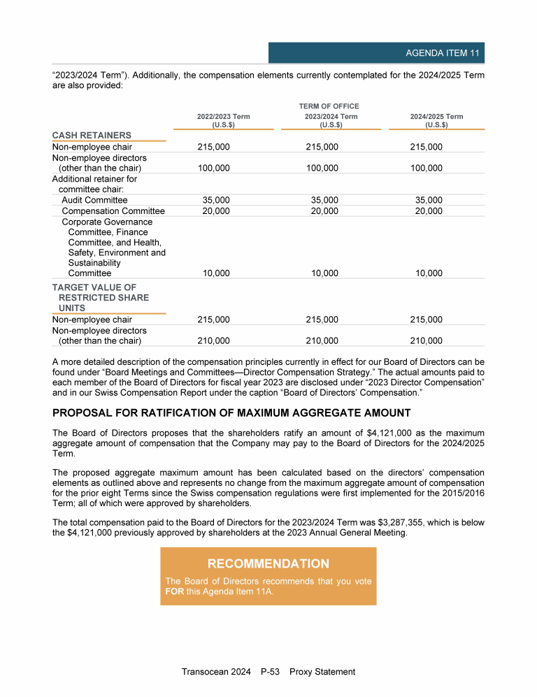 Agenda Item 11. Prospective Vote on the Maximum Compensation of (A) the Board of Directors and (B) the Executive Management Team