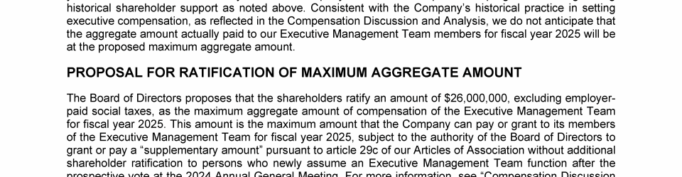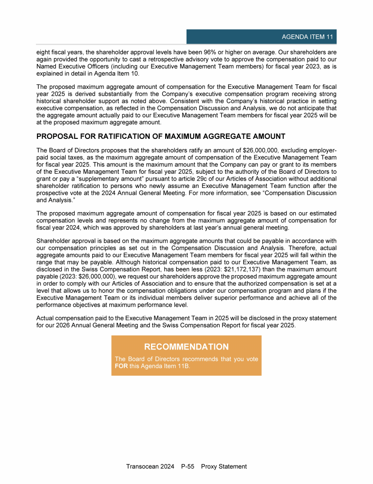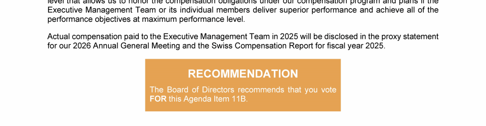 Agenda Item 11. Prospective Vote on the Maximum Compensation of (A) the Board of Directors and (B) the Executive Management Team