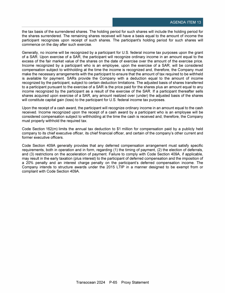 Agenda Item 13. Approval of (A) Amendment and Restatement of Transocean Ltd. 2015 Long-Term Incentive Plan and (B) Capital Authorization for Share-Based Incentive Plans