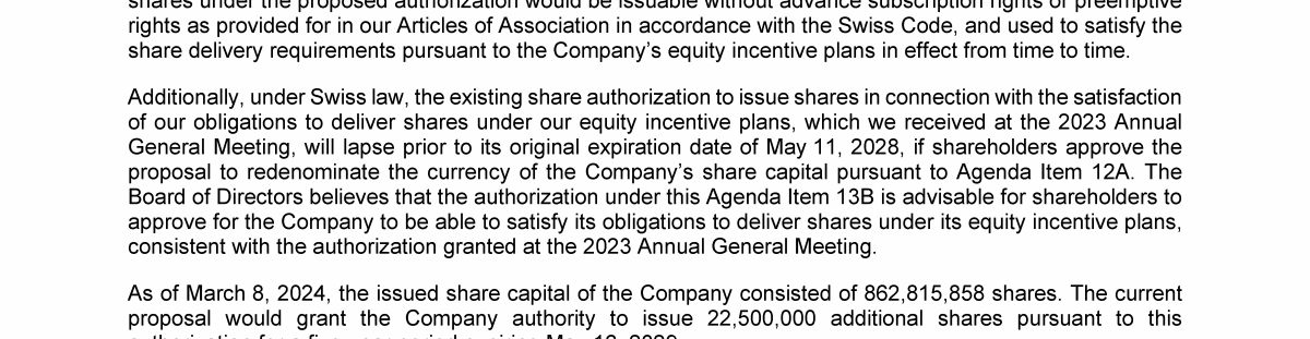 Agenda Item 12. Approval of (A) Redenominating the Currency of the Company's Share Capital from Swiss Francs to U.S. Dollars and (B) Reducing the Par Value of the Company's Shares
