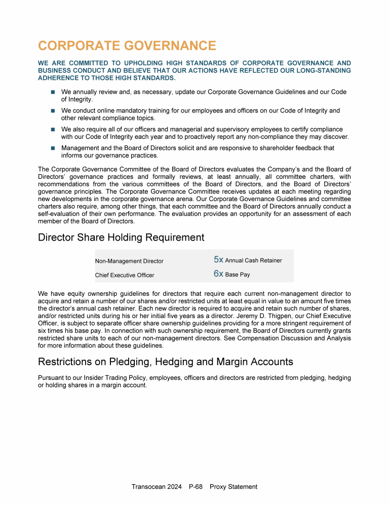 Agenda Item 1. Approval of (A) the 2023 Annual Report, Including the Audited Consolidated Financial Statements of Transocean Ltd. for Fiscal Year 2023 and the Audited Statutory Financial Statements of Transocean Ltd. for Fiscal Year 2023, (B) the Swiss Statutory Compensation Report for Fiscal Year 2023 and (C) the Swiss Statutory Report on Non-Financial Matters for Fiscal Year 2023