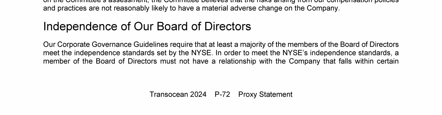 Agenda Item 1. Approval of (A) the 2023 Annual Report, Including the Audited Consolidated Financial Statements of Transocean Ltd. for Fiscal Year 2023 and the Audited Statutory Financial Statements of Transocean Ltd. for Fiscal Year 2023, (B) the Swiss Statutory Compensation Report for Fiscal Year 2023 and (C) the Swiss Statutory Report on Non-Financial Matters for Fiscal Year 2023