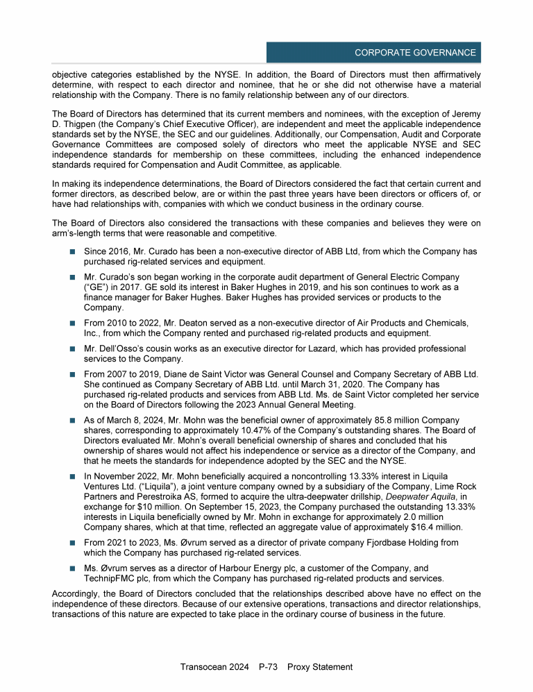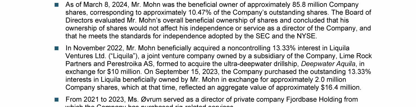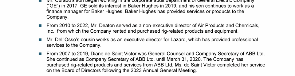 Agenda Item 1. Approval of (A) the 2023 Annual Report, Including the Audited Consolidated Financial Statements of Transocean Ltd. for Fiscal Year 2023 and the Audited Statutory Financial Statements of Transocean Ltd. for Fiscal Year 2023, (B) the Swiss Statutory Compensation Report for Fiscal Year 2023 and (C) the Swiss Statutory Report on Non-Financial Matters for Fiscal Year 2023