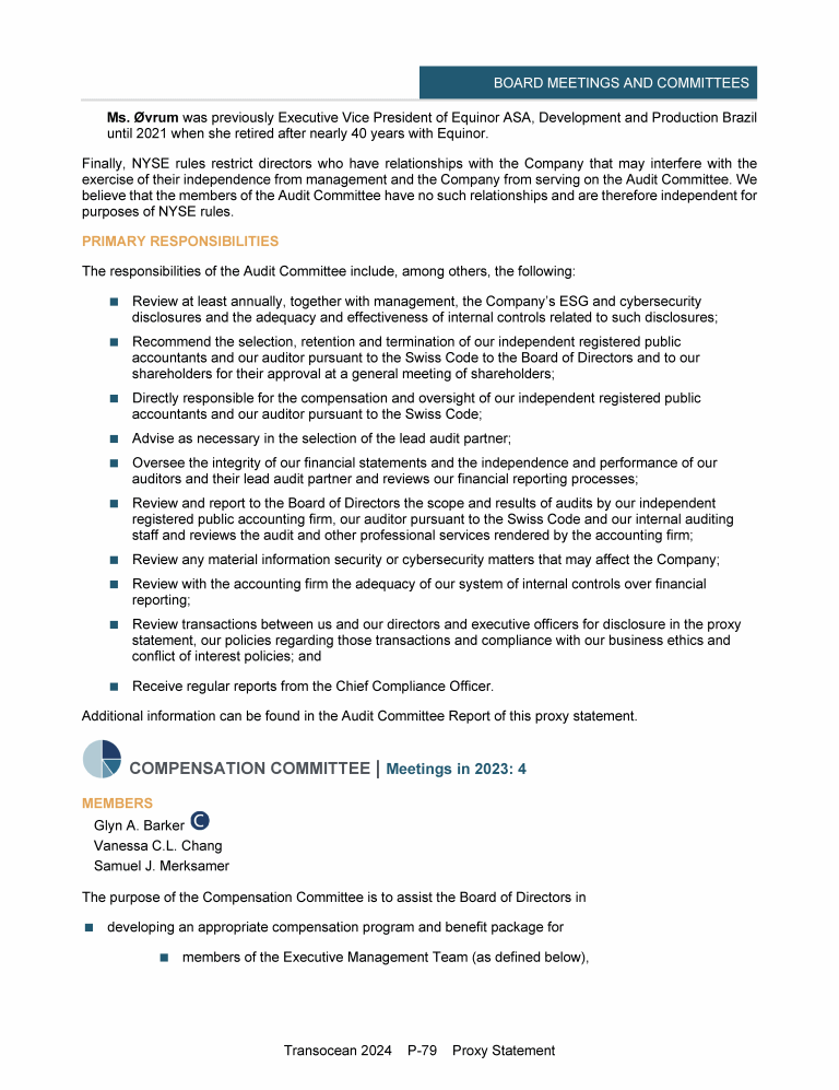 Agenda Item 1. Approval of (A) the 2023 Annual Report, Including the Audited Consolidated Financial Statements of Transocean Ltd. for Fiscal Year 2023 and the Audited Statutory Financial Statements of Transocean Ltd. for Fiscal Year 2023, (B) the Swiss Statutory Compensation Report for Fiscal Year 2023 and (C) the Swiss Statutory Report on Non-Financial Matters for Fiscal Year 2023