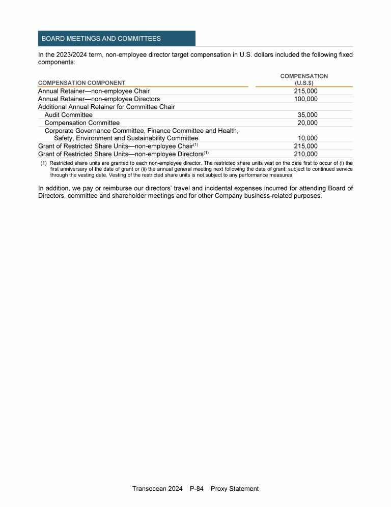 Agenda Item 1. Approval of (A) the 2023 Annual Report, Including the Audited Consolidated Financial Statements of Transocean Ltd. for Fiscal Year 2023 and the Audited Statutory Financial Statements of Transocean Ltd. for Fiscal Year 2023, (B) the Swiss Statutory Compensation Report for Fiscal Year 2023 and (C) the Swiss Statutory Report on Non-Financial Matters for Fiscal Year 2023