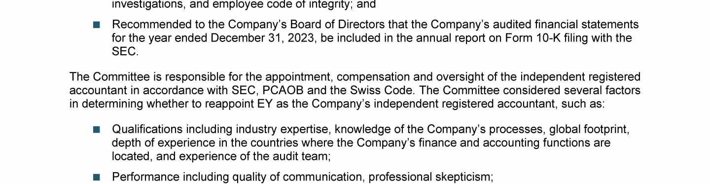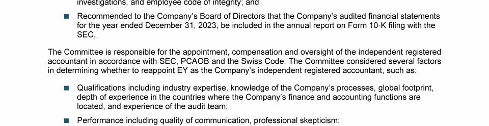 Agenda Item 9. Appointment of Ernst & Young LLP as the Company's Independent Registered Public Accounting Firm for Fiscal Year 2024 and Reelection of Ernst & Young Ltd, Zurich, as the Company's Auditor for a Further One-Year Term