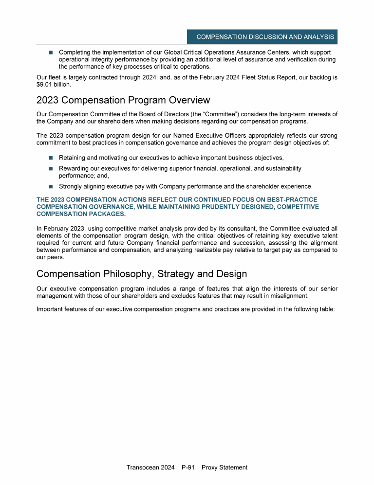 Agenda Item 1. Approval of (A) the 2023 Annual Report, Including the Audited Consolidated Financial Statements of Transocean Ltd. for Fiscal Year 2023 and the Audited Statutory Financial Statements of Transocean Ltd. for Fiscal Year 2023, (B) the Swiss Statutory Compensation Report for Fiscal Year 2023 and (C) the Swiss Statutory Report on Non-Financial Matters for Fiscal Year 2023