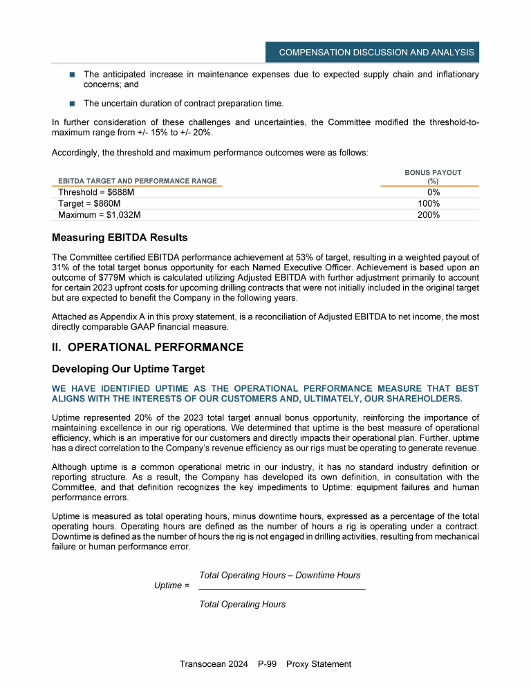 Agenda Item 1. Approval of (A) the 2023 Annual Report, Including the Audited Consolidated Financial Statements of Transocean Ltd. for Fiscal Year 2023 and the Audited Statutory Financial Statements of Transocean Ltd. for Fiscal Year 2023, (B) the Swiss Statutory Compensation Report for Fiscal Year 2023 and (C) the Swiss Statutory Report on Non-Financial Matters for Fiscal Year 2023