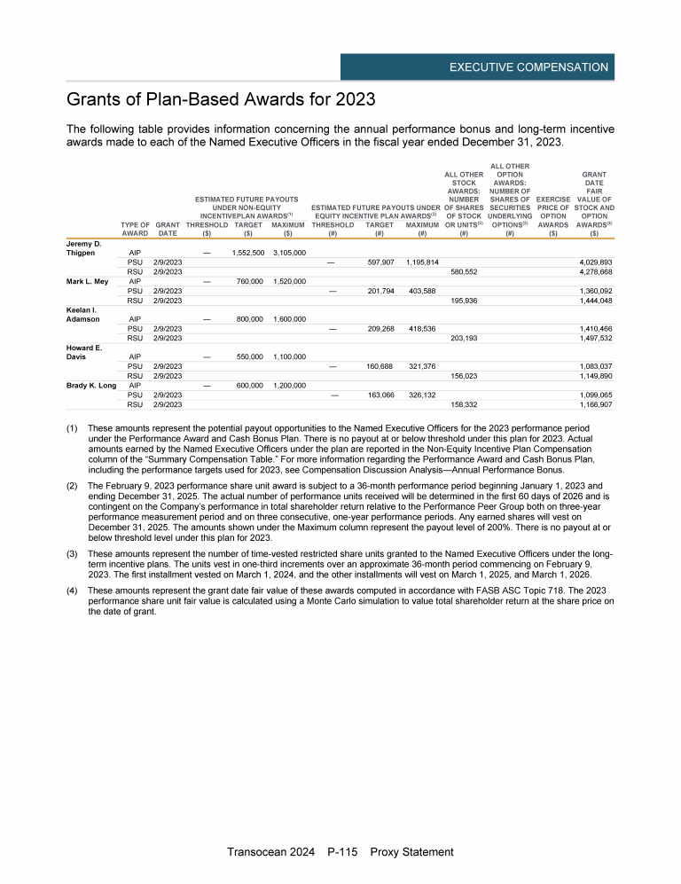 Agenda Item 1. Approval of (A) the 2023 Annual Report, Including the Audited Consolidated Financial Statements of Transocean Ltd. for Fiscal Year 2023 and the Audited Statutory Financial Statements of Transocean Ltd. for Fiscal Year 2023, (B) the Swiss Statutory Compensation Report for Fiscal Year 2023 and (C) the Swiss Statutory Report on Non-Financial Matters for Fiscal Year 2023