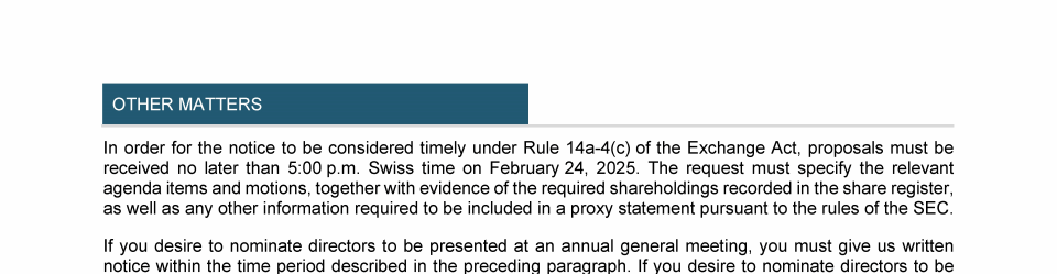 Agenda Item 9. Appointment of Ernst & Young LLP as the Company's Independent Registered Public Accounting Firm for Fiscal Year 2024 and Reelection of Ernst & Young Ltd, Zurich, as the Company's Auditor for a Further One-Year Term