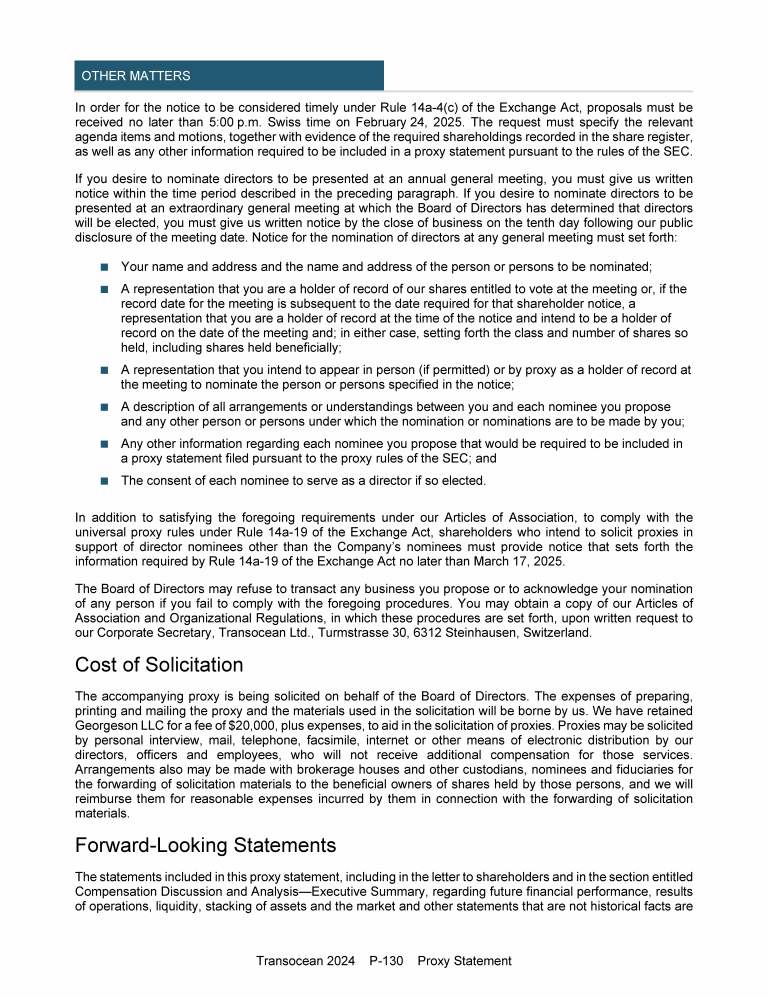 Invitation to 2024 Annual General Meeting of Transocean Ltd.