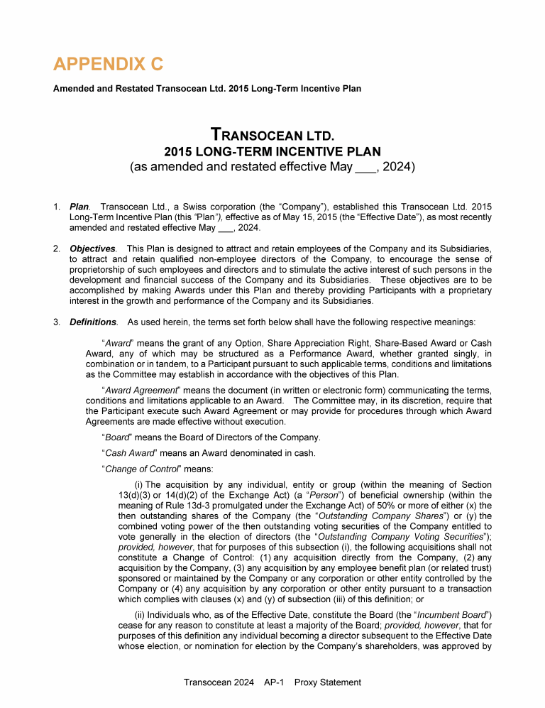 Agenda Item 13. Approval of (A) Amendment and Restatement of Transocean Ltd. 2015 Long-Term Incentive Plan and (B) Capital Authorization for Share-Based Incentive Plans