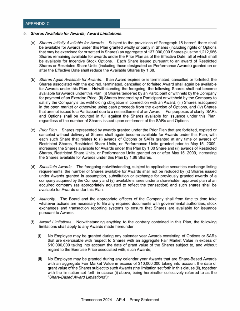 Agenda Item 13. Approval of (A) Amendment and Restatement of Transocean Ltd. 2015 Long-Term Incentive Plan and (B) Capital Authorization for Share-Based Incentive Plans