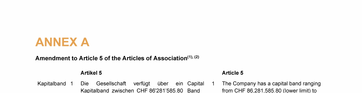 Annex B - Redenomination of the Currency of the Company's Share Capital from Swiss Francs to U.S. Dollars
