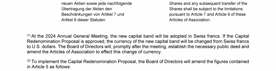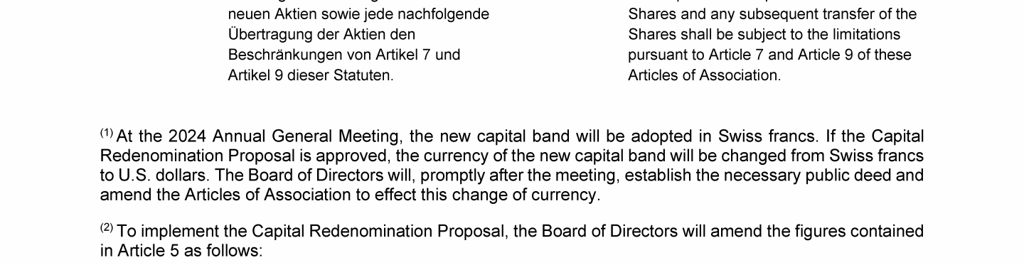 Annex B - Redenomination of the Currency of the Company's Share Capital from Swiss Francs to U.S. Dollars