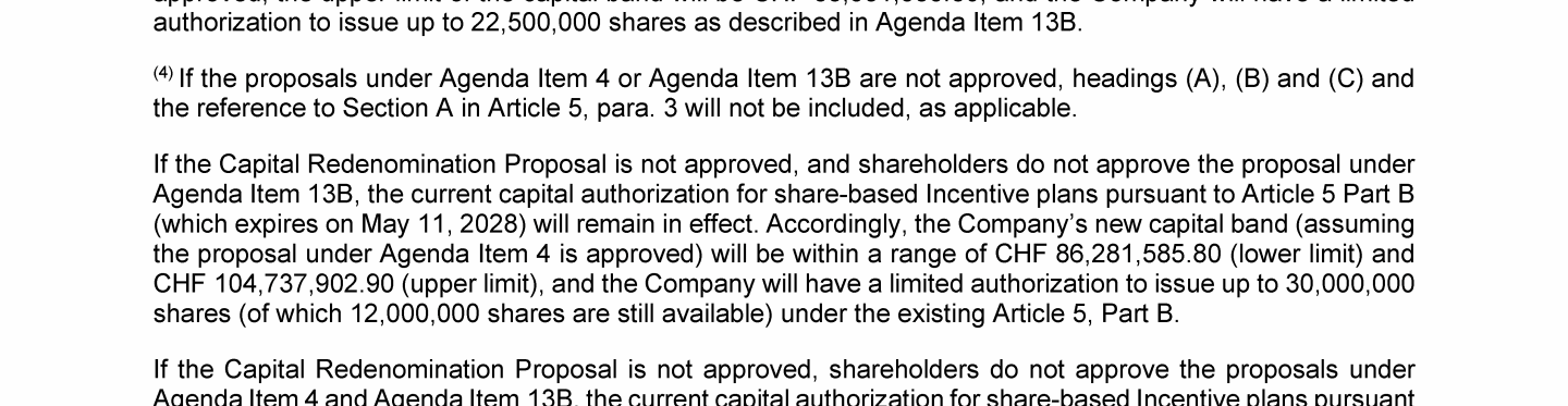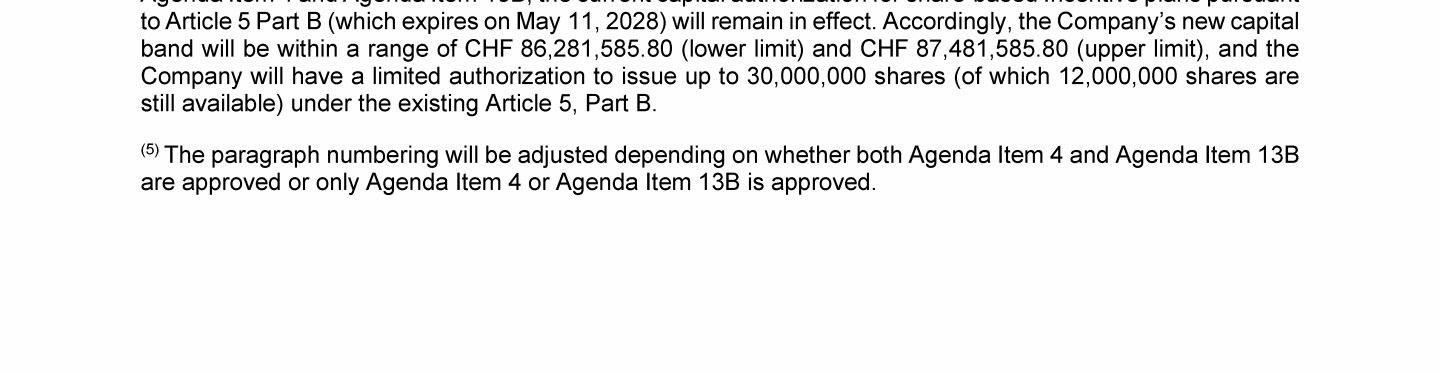 Annex B - Redenomination of the Currency of the Company's Share Capital from Swiss Francs to U.S. Dollars