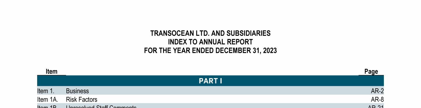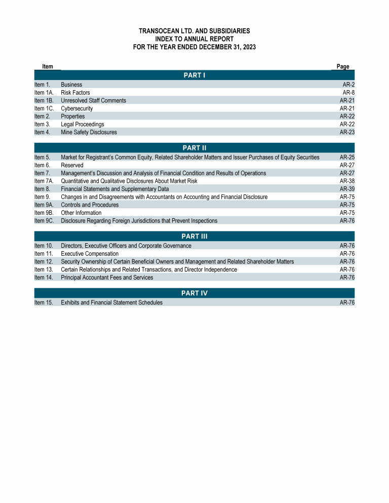 Agenda Item 1. Approval of (A) the 2023 Annual Report, Including the Audited Consolidated Financial Statements of Transocean Ltd. for Fiscal Year 2023 and the Audited Statutory Financial Statements of Transocean Ltd. for Fiscal Year 2023, (B) the Swiss Statutory Compensation Report for Fiscal Year 2023 and (C) the Swiss Statutory Report on Non-Financial Matters for Fiscal Year 2023