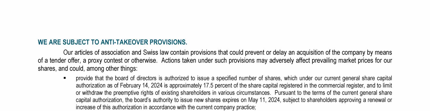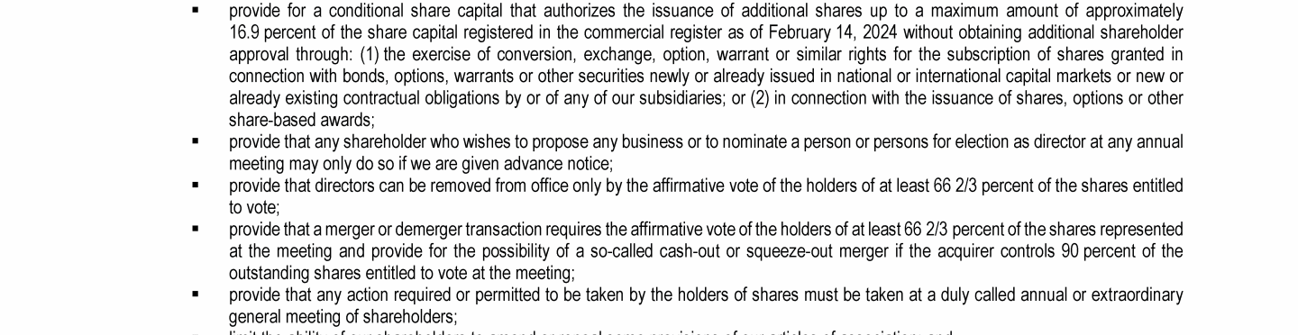 Annex B - Redenomination of the Currency of the Company's Share Capital from Swiss Francs to U.S. Dollars