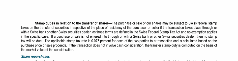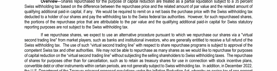 Annex B - Redenomination of the Currency of the Company's Share Capital from Swiss Francs to U.S. Dollars