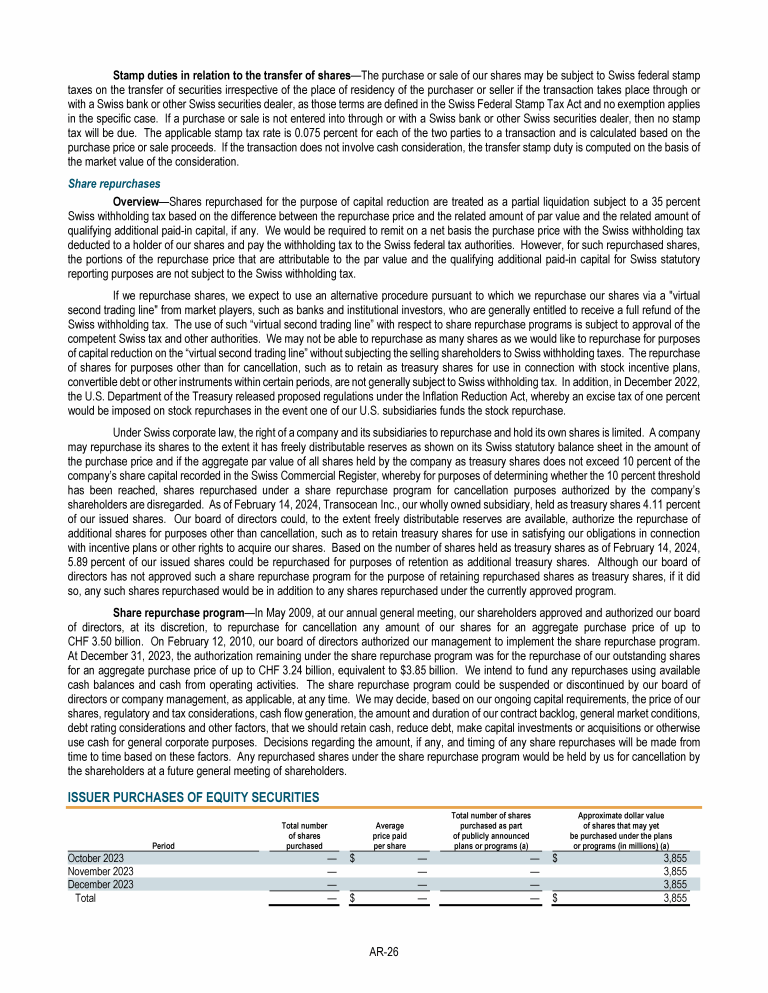 Invitation to 2024 Annual General Meeting of Transocean Ltd.