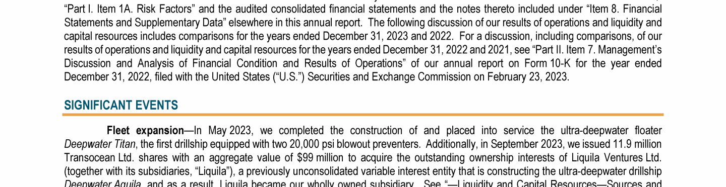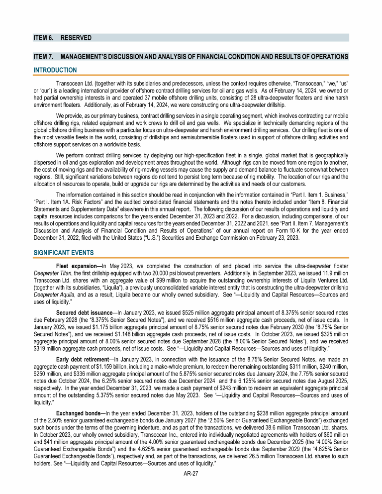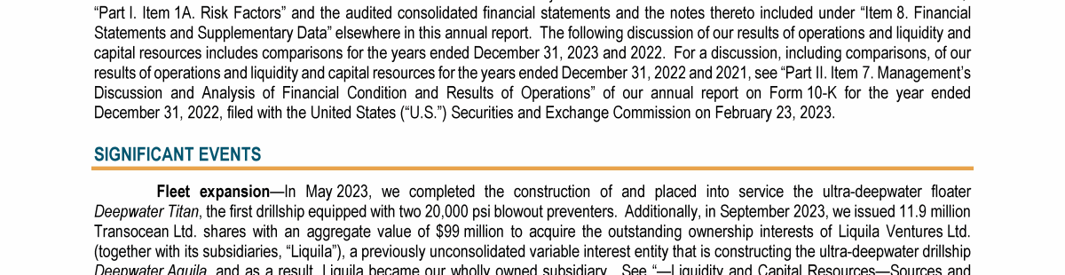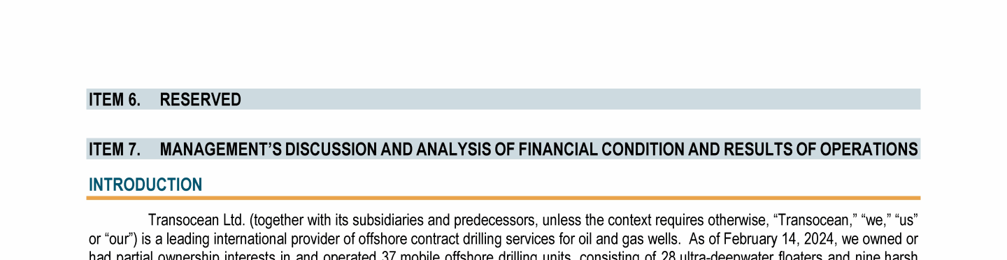 Agenda Item 1. Approval of (A) the 2023 Annual Report, Including the Audited Consolidated Financial Statements of Transocean Ltd. for Fiscal Year 2023 and the Audited Statutory Financial Statements of Transocean Ltd. for Fiscal Year 2023, (B) the Swiss Statutory Compensation Report for Fiscal Year 2023 and (C) the Swiss Statutory Report on Non-Financial Matters for Fiscal Year 2023
