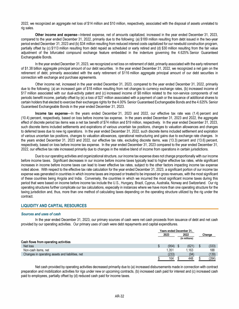 Agenda Item 1. Approval of (A) the 2023 Annual Report, Including the Audited Consolidated Financial Statements of Transocean Ltd. for Fiscal Year 2023 and the Audited Statutory Financial Statements of Transocean Ltd. for Fiscal Year 2023, (B) the Swiss Statutory Compensation Report for Fiscal Year 2023 and (C) the Swiss Statutory Report on Non-Financial Matters for Fiscal Year 2023