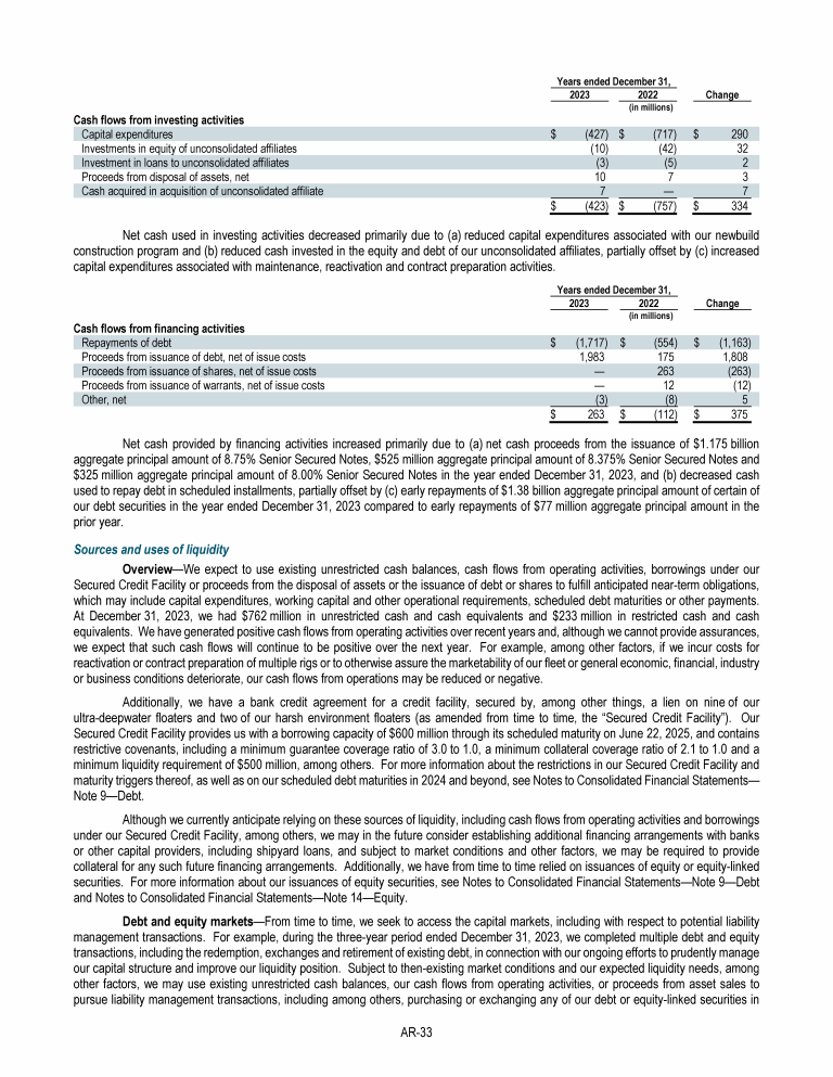 Agenda Item 1. Approval of (A) the 2023 Annual Report, Including the Audited Consolidated Financial Statements of Transocean Ltd. for Fiscal Year 2023 and the Audited Statutory Financial Statements of Transocean Ltd. for Fiscal Year 2023, (B) the Swiss Statutory Compensation Report for Fiscal Year 2023 and (C) the Swiss Statutory Report on Non-Financial Matters for Fiscal Year 2023