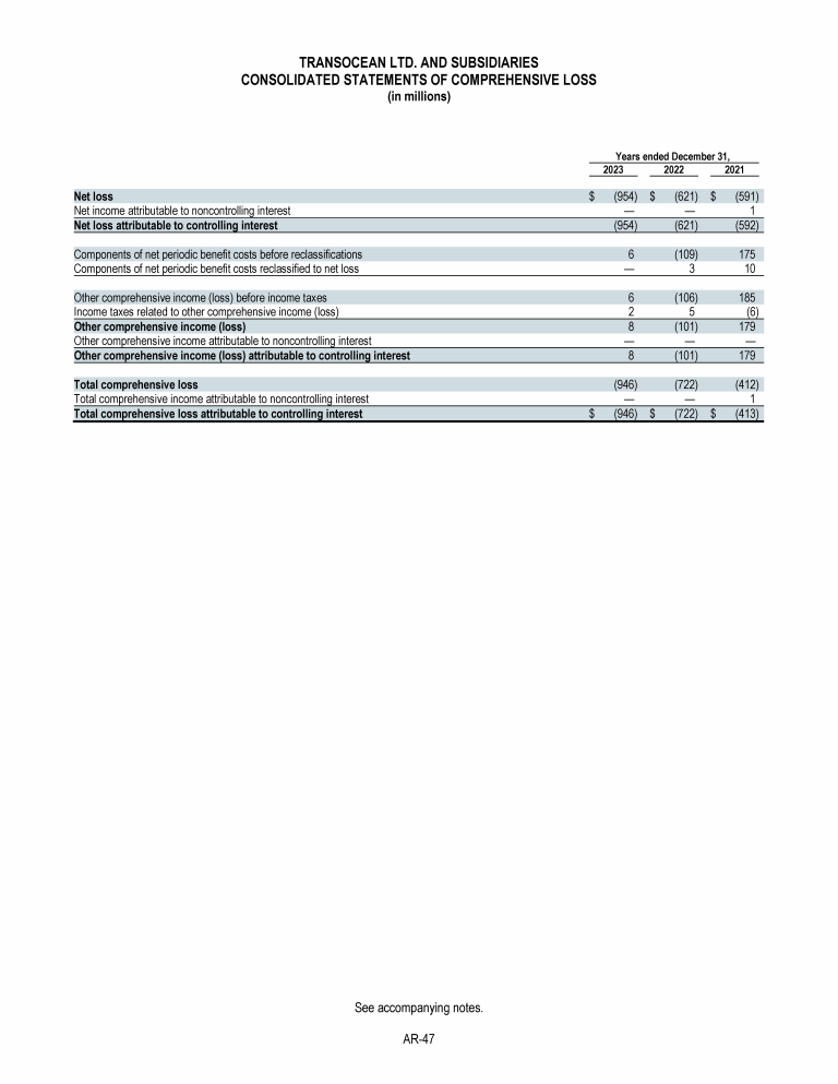 Agenda Item 1. Approval of (A) the 2023 Annual Report, Including the Audited Consolidated Financial Statements of Transocean Ltd. for Fiscal Year 2023 and the Audited Statutory Financial Statements of Transocean Ltd. for Fiscal Year 2023, (B) the Swiss Statutory Compensation Report for Fiscal Year 2023 and (C) the Swiss Statutory Report on Non-Financial Matters for Fiscal Year 2023
