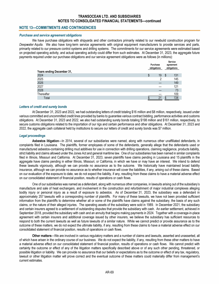 Agenda Item 1. Approval of (A) the 2023 Annual Report, Including the Audited Consolidated Financial Statements of Transocean Ltd. for Fiscal Year 2023 and the Audited Statutory Financial Statements of Transocean Ltd. for Fiscal Year 2023, (B) the Swiss Statutory Compensation Report for Fiscal Year 2023 and (C) the Swiss Statutory Report on Non-Financial Matters for Fiscal Year 2023