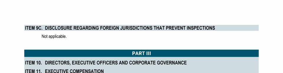 9C. Disclosure Regarding Foreign Jurisdictions that Prevent Inspections
