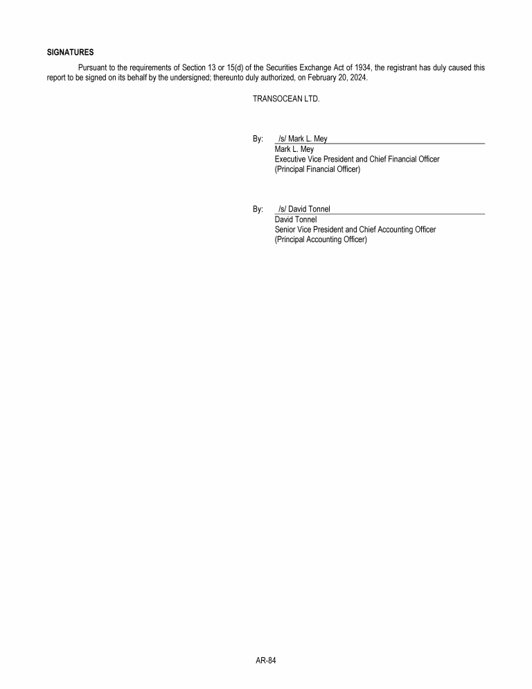 Agenda Item 1. Approval of (A) the 2023 Annual Report, Including the Audited Consolidated Financial Statements of Transocean Ltd. for Fiscal Year 2023 and the Audited Statutory Financial Statements of Transocean Ltd. for Fiscal Year 2023, (B) the Swiss Statutory Compensation Report for Fiscal Year 2023 and (C) the Swiss Statutory Report on Non-Financial Matters for Fiscal Year 2023